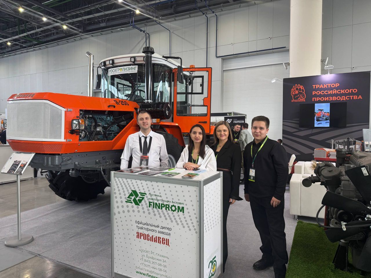 На стенде А432 в Павильоне №3 гостей и специалистов ждал универсальный сельскохозяйственный трактор ЯРОСЛАВЕЦ Я-250СХ, который представил наш партнёр ООО «ФИНПРОМ». Модель оснащена современным 6-цилиндровым двигателем ЯМЗ-53645 мощностью 250 л.с., что обеспечивает высокую производительность и надёжность.